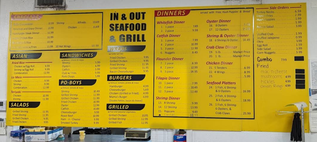 In & Out Stop Menu offers a satisfying variety of dishes that make it a must-visit for anyone in the Pascagoula area. Known for its laid-back atmosphere and friendly service, this restaurant combines classic Southern comfort food with seafood favorites, making it the perfect stop for a delicious meal. One of the standout options on the In & Out Stop menu is Momma’s Burger. This hearty, juicy burger features all the essential fixings, from crisp lettuce and juicy tomatoes to pickles and a special sauce, making it a crowd favorite. For those craving seafood, the 1lb Steamed Shrimp is a highlight, offering plump, tender shrimp that are perfectly seasoned and steamed to perfection, a true seafood lover’s dream. Another great option is the Shrimp Poboy, which combines crispy fried shrimp tucked into a soft, toasted bun with all the fixings-lettuce, tomato, and a generous helping of sauce, creating a deliciously messy and flavorful sandwich that hits the spot every time. Whether you’re in the mood for a satisfying burger, fresh shrimp, or a classic seafood sandwich, the In & Out Stop menu delivers with mouthwatering options that are sure to please every palate. The mix of flavors and the quality of the dishes make it a local favorite for a casual, fulfilling meal in a welcoming setting.